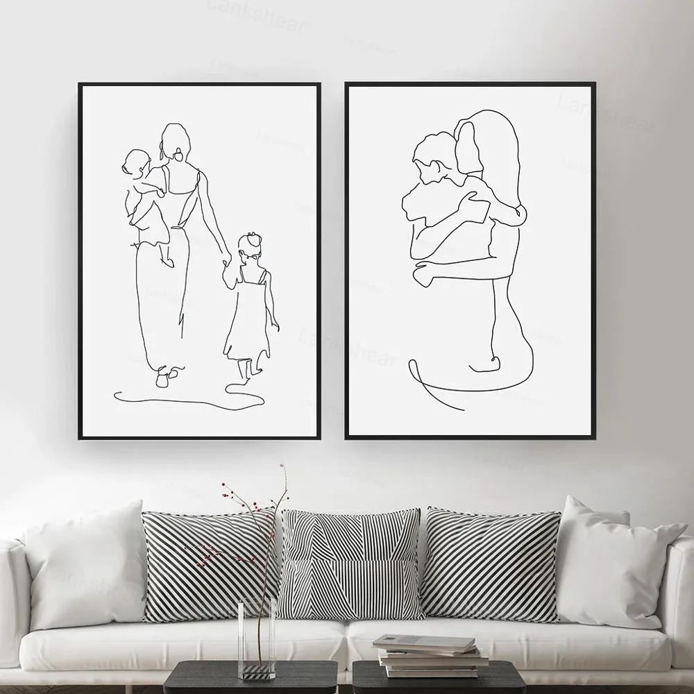 Абстрактная Минималистичная Настенная картина с изображением сына и мамы