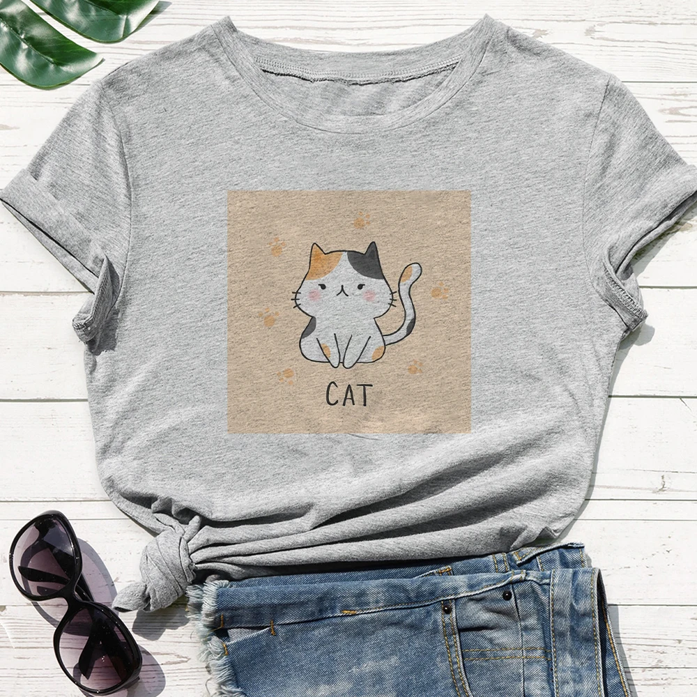 Футболка женская оверсайз с котом, черная Милая рубашка с котенком,...