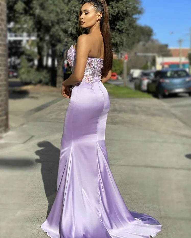 Атласные платья-русалки с открытыми плечами, фиолетового цвета, для...