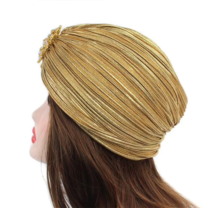 Женская индийская тюрбан, головной убор, плиссированная мягкая бархатная хиджаб для волос, Кепка с брошью, ювелирные изделия