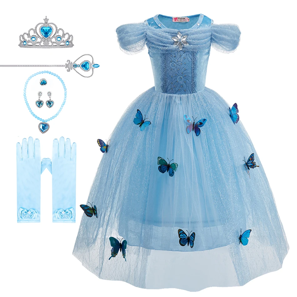 Название: нарядный костюм Золушки, Авроры, Белль для девочек на Хэллоуин; Нарядный костюм принцессы с бабочками; Детская одежда без рукавов; От 3 до 10 лет