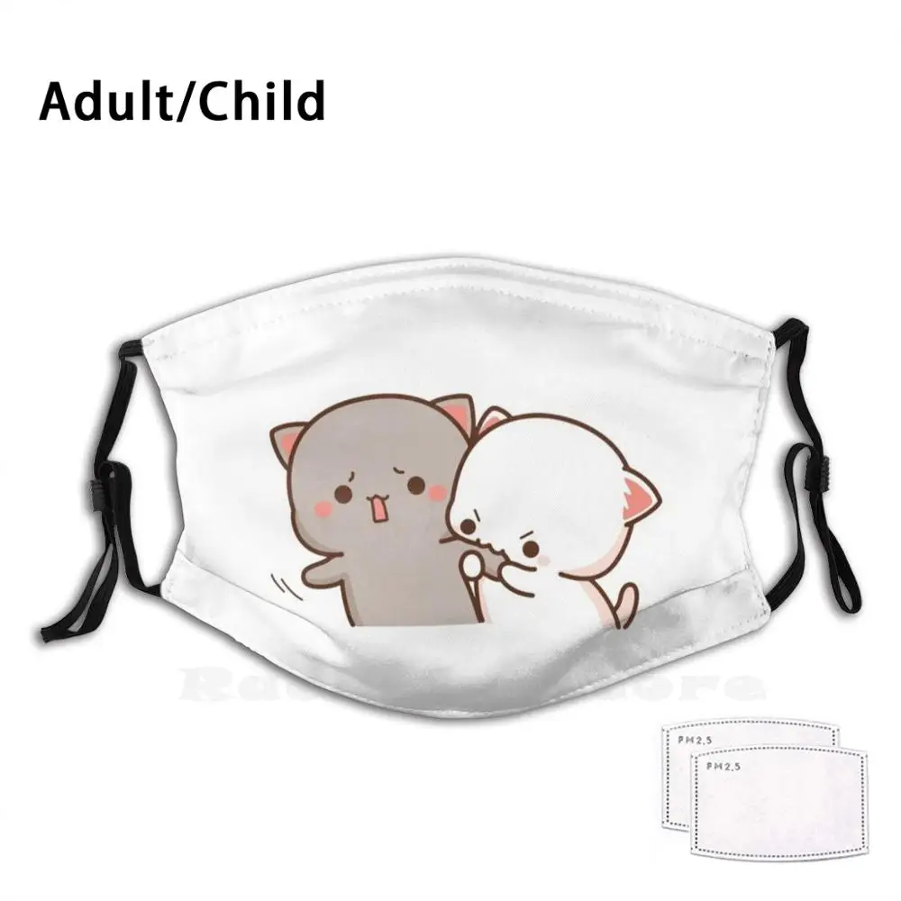 Многоразовая маска для лица персик и Гома Mochi Cat Bite С смешным принтом Pm2.5, фильтрующая маска персиковый Кот Goma Mochi Cat Kitty, милый романтический Kawaii