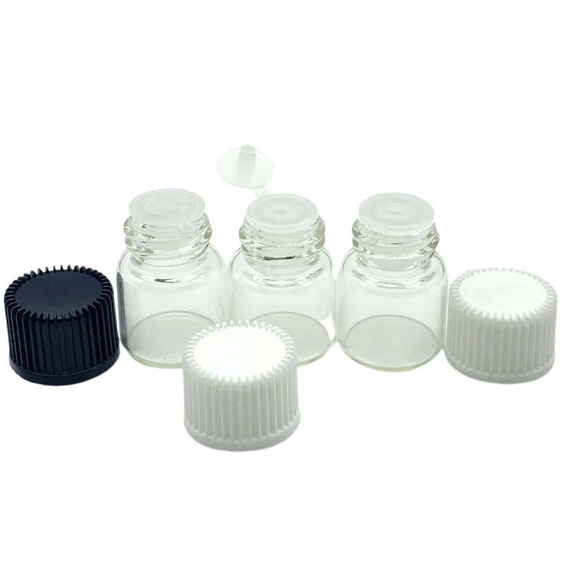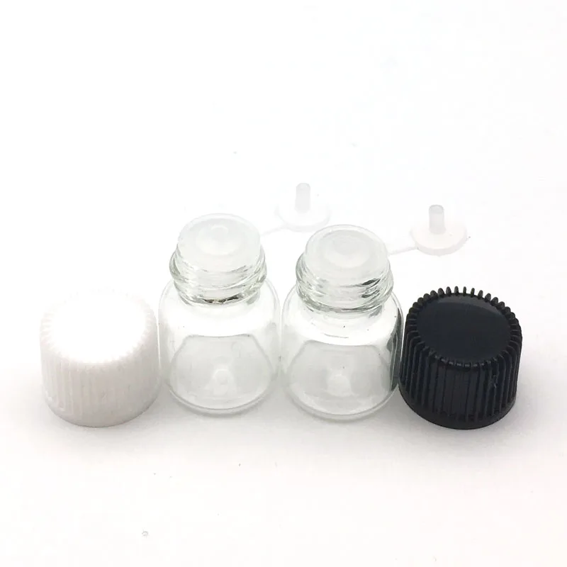 1 мл Маленькая прозрачная стеклянная бутылка с отверстием редуктор и крышка мини 1/4 Dram мини флаконы для эфирных масел