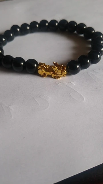 Золотой цвет слишком ярко-желтый, неблагородно выглядит. Черная бусина похожа на пластиковую, совсем не камень.