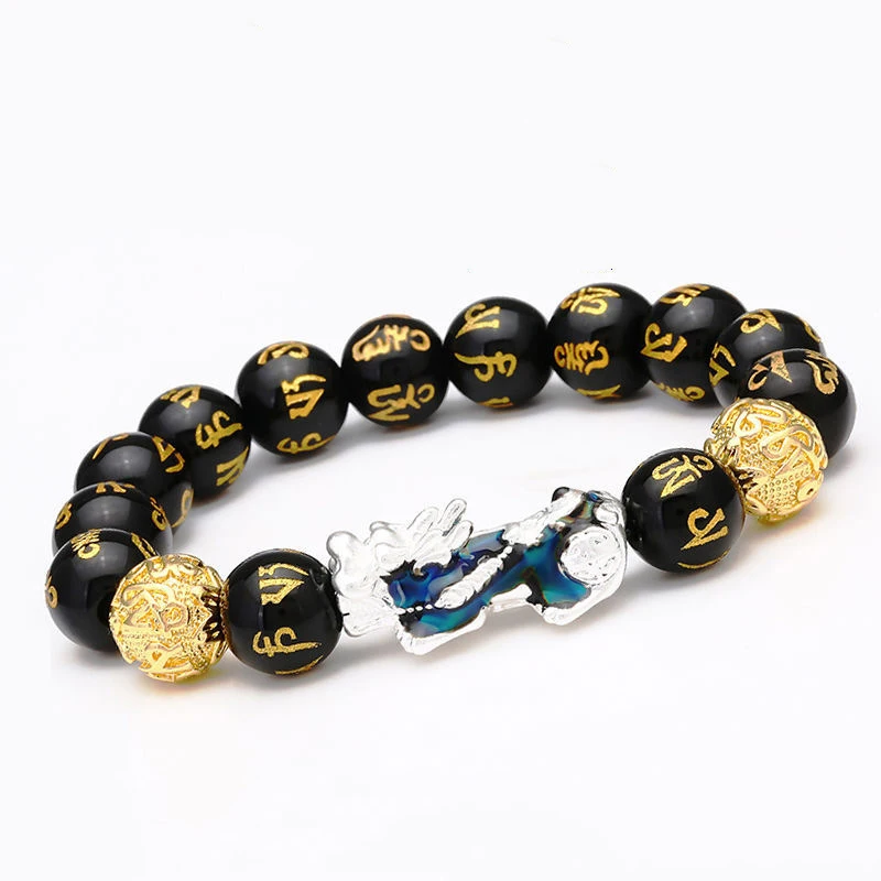 Браслеты из ОБСИДИАНОВЫХ каменных бусин китайские феншуй пиксиу Меняющие цвет браслет богатство удача отважные войска для мужчин женщин мужчин браслеты