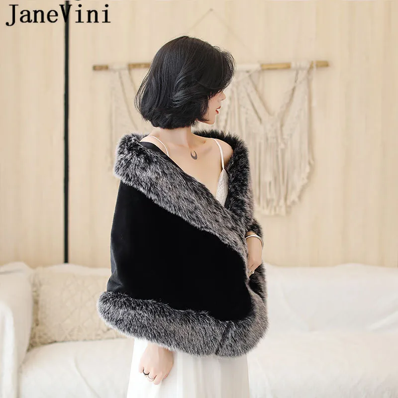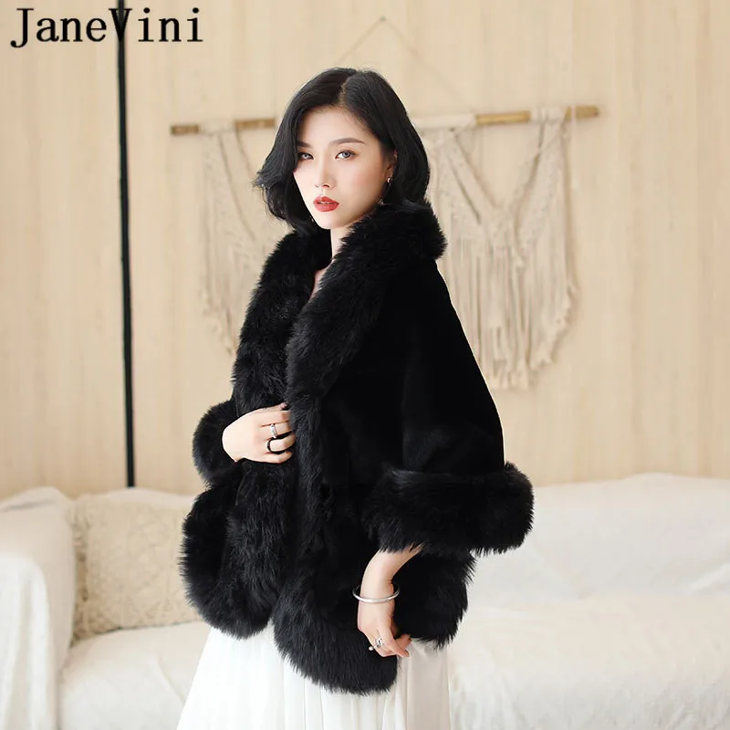 JaneVini 2020 черные свадебные туфли; Свадебная накидка болеро из искусственного меха с Свадебная шаль, болеро зимние женские кейпы, жакет-болеро для вечерние