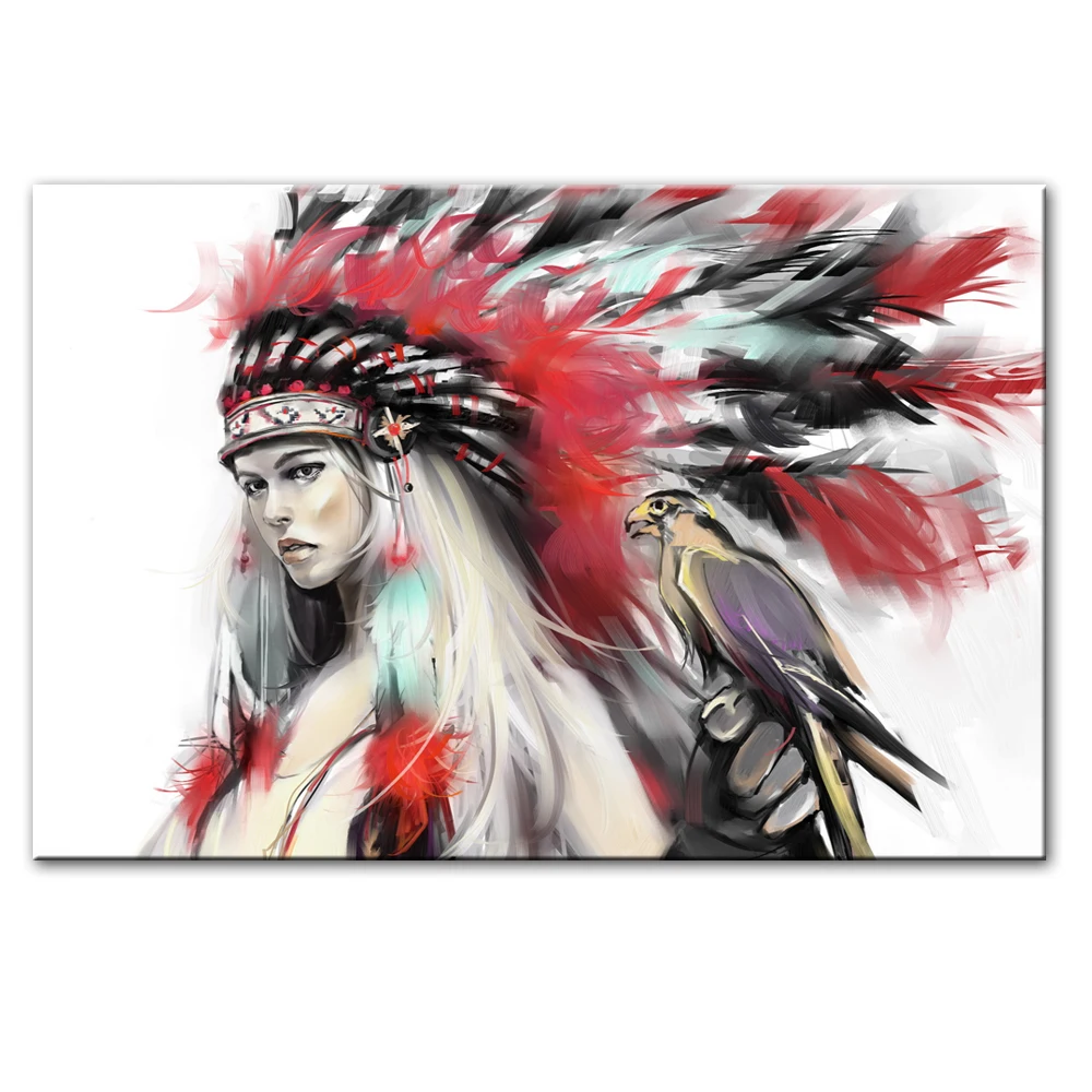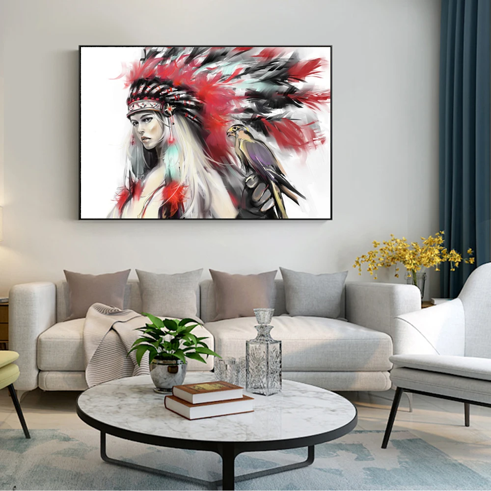 Картина на холсте с акварелью и индийской девушкой, искусство на стену, картины для гостиной, украшение для дома