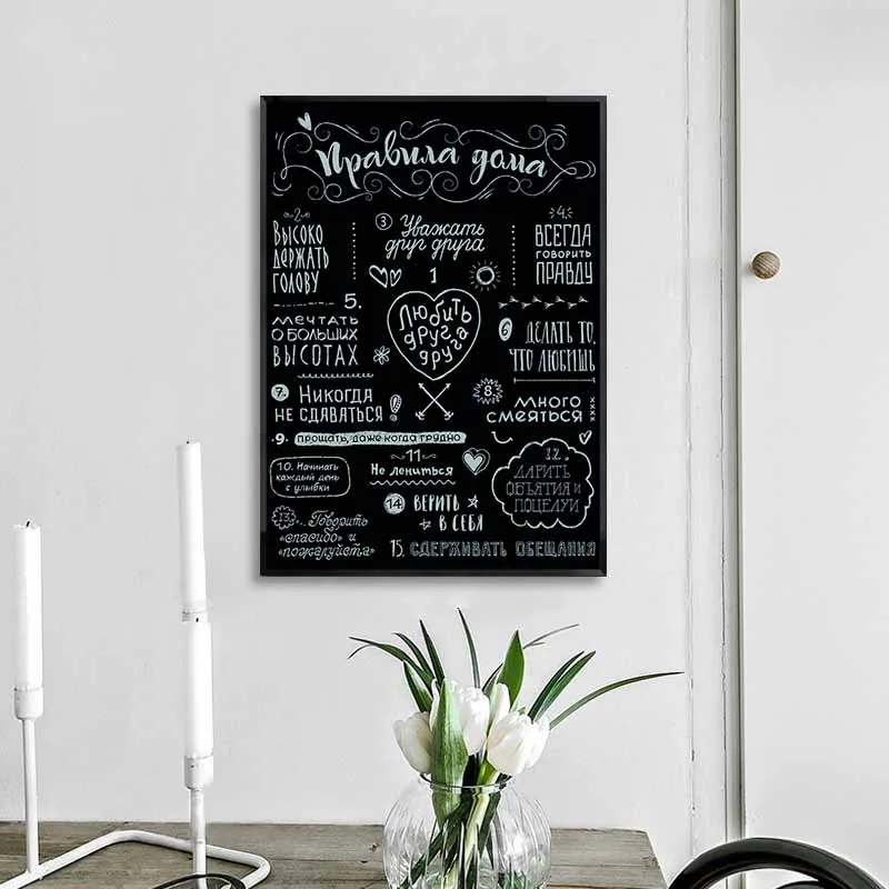 Картина на холсте Правила Дома, русские цитаты, настенные картины художественные плакаты и принты, нордические черные и белые картины, украшения для дома