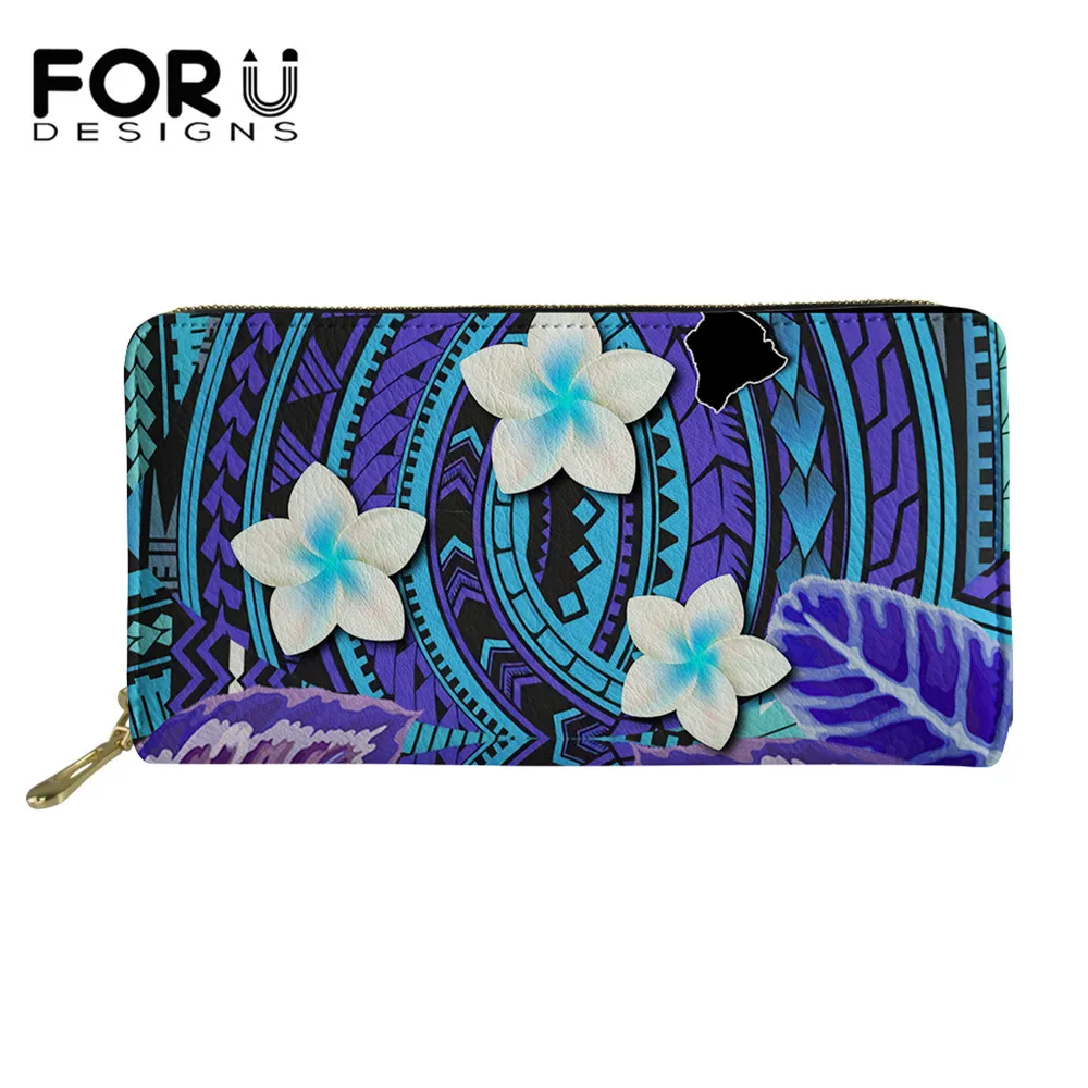 FORUDESIGNSполинезийский традиционный этнический цветочный дизайн, женские сумки для монет, кожаный женский кошелек, известный бренд, женские кошельки