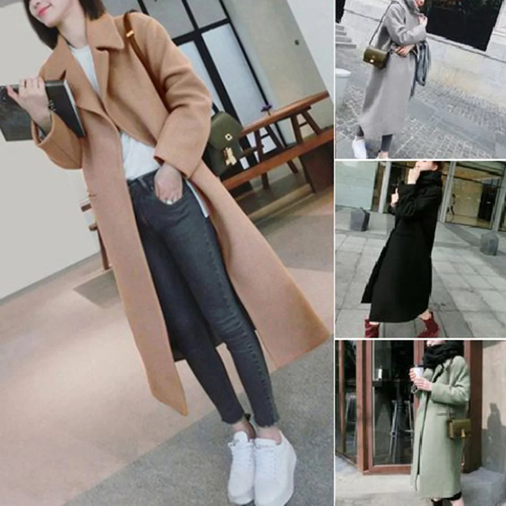 Модное однотонное плотное женское осенне-зимнее теплое длинное паль...