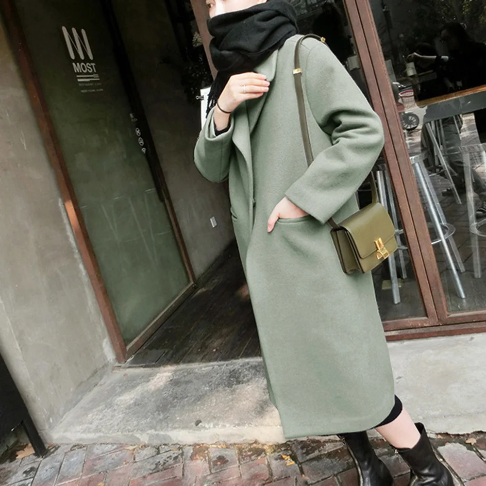 Осень-зима 2021, модное однотонное теплое пальто ручной стирки, пло...