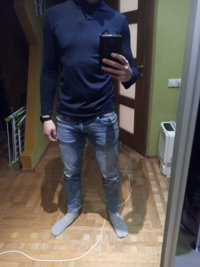 Водолазка синтетическая, я думала будет с примесью хб, но она качеством как колготки. Электрилезуется. На рост 186 взяла самый большой размер, рукава отлично, но в объёме конечно большая, но муж без претензий. Дошла быстро.