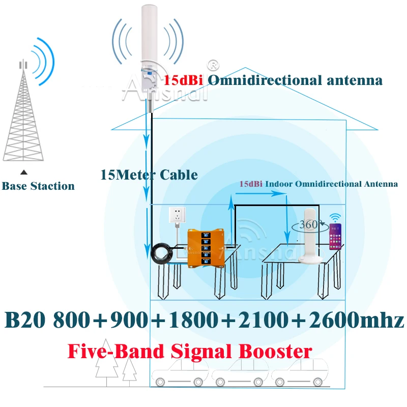 Frequency BandFive-Band B20 800 900 1800 2100 2600Mhz 4G Mobile Signal Booster