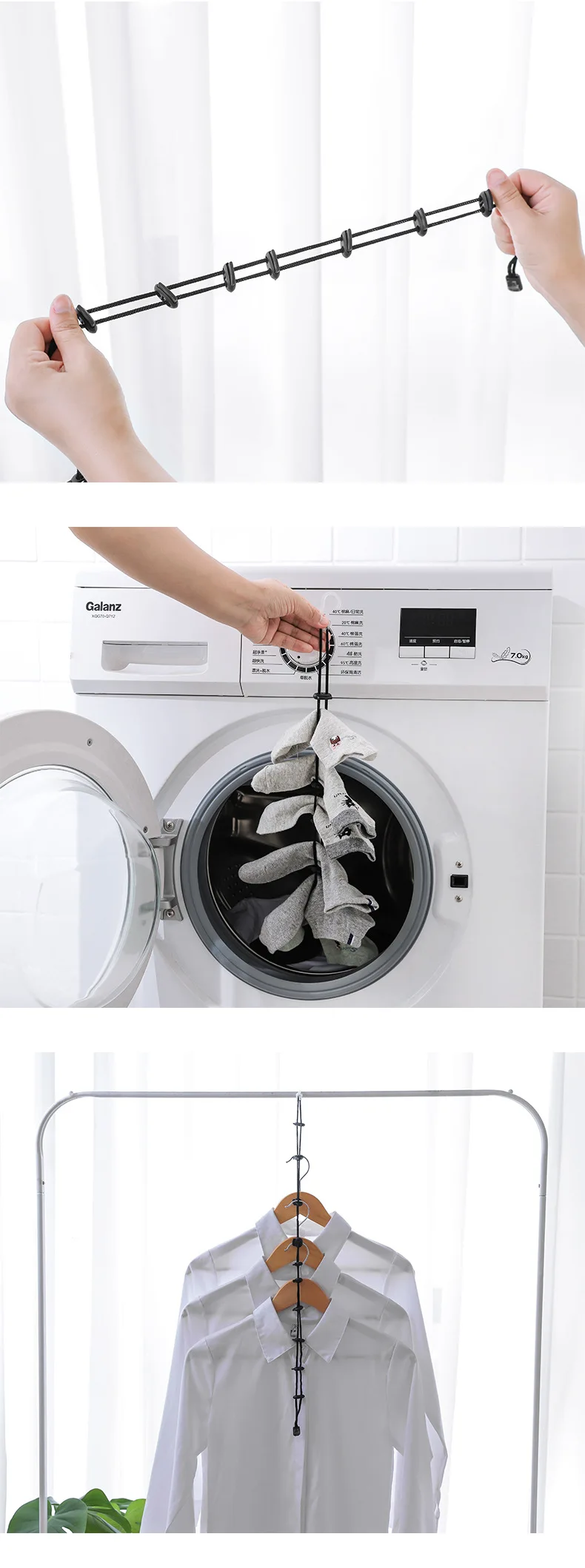 Веревка для хранения носков, Регулируемая Веревка для одежды, зажим...