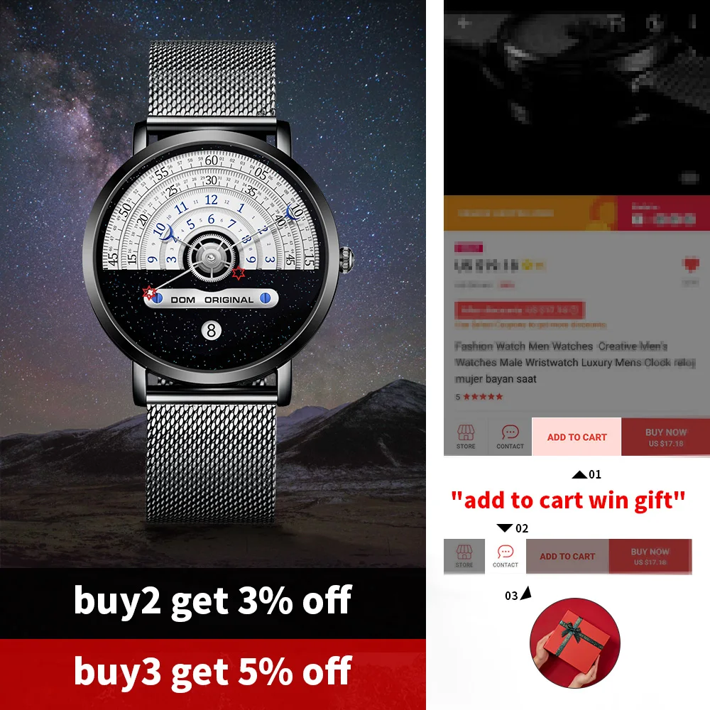 Роскошные мужские часы DOM, мужские водонепроницаемые часы с датой,...