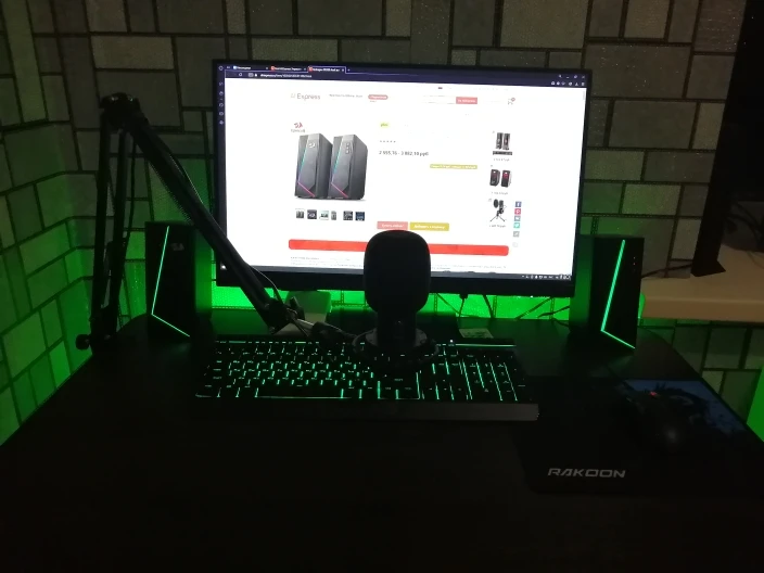 Быстрая доставка до Испании всего за 12 дней. Угол упаковки был немножко поврежденен но товар цел. Все отлично работает - проверял! Звук очень хороший, по умолчанию громкий на высоких частотах, можно поковыряться в настройках звука и настроить на свой вкус и цвет как говорится, (я себе сделал что бы динамики выдавали частоты ниже обычных) звук стал чище и качественнее но убавилась громкость. Это кому как, мне больше нравится качество чем громкость. О подсветке: красивые и асимметричные линии с разными режимами и цветами, статичными и правающими очень красиво смотрится в сочетании с другими устройствами например клавиатура с подсветкой как у меня или мышь. В общем я в восторге покупкой и полностью рекомендую товар. Спасибо продавцу;)