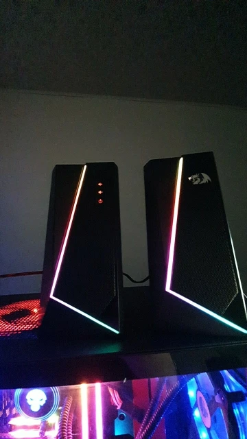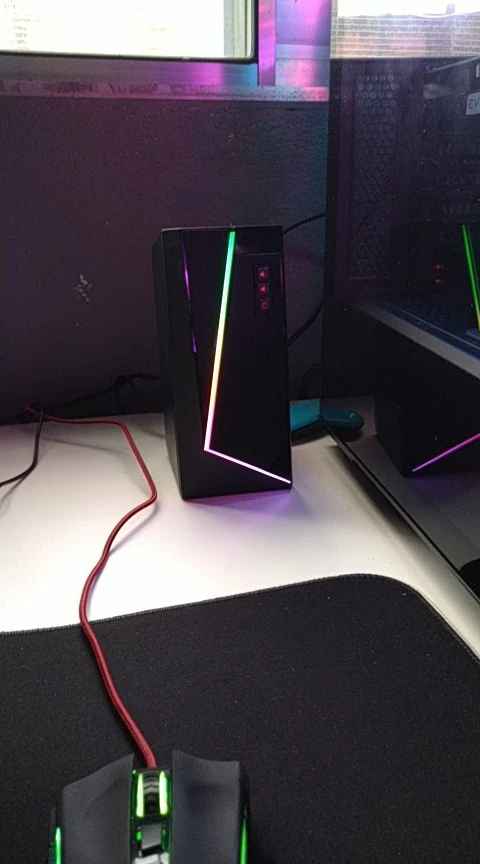 У них потрясающая эстетика, на мой взгляд, у них очень хорошее качество звука, это превзошло мои ожидания на самом деле. Он оснащен 6 цветными режимами, 3 с изменением различных цветов и 3 со статическим цветом RGB. Одна деталь заключается в том, что при подключении немного светится белый шум, даже если вы отключите их от кнопки. Но лично это не то, что меня беспокоило. Товар прибыл очень быстро в мою страну, спасибо!