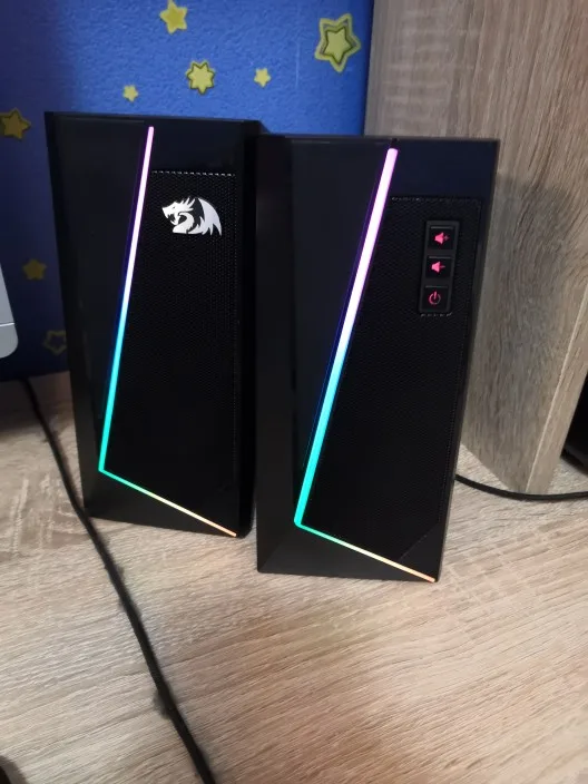 Очень крутые колонки, говорят для музыки не подходят, но как по мне, проблем в колонках с музыкой нет, особенно если старые колоночки под столик закинуть и врубить сразу четыре, соседи прошу прощения. Даже при обычном освещении, выглядит отпадно.