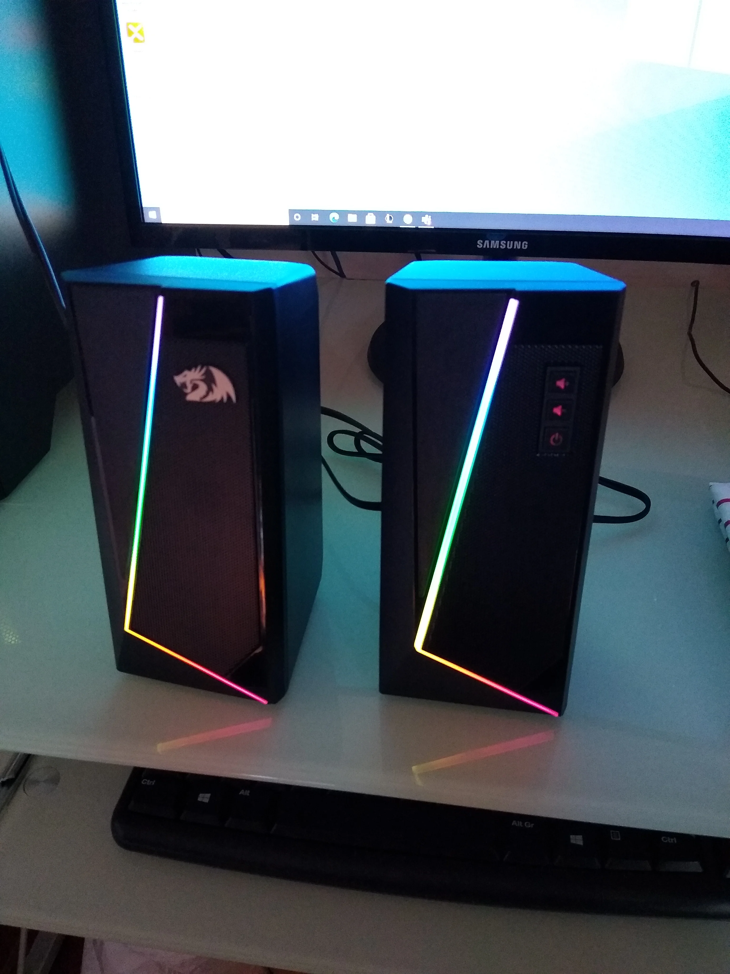 Расскажу что чувствовал когда открывал. Я конечно думал что они побольше будут, а когда распаковал они оказались небольшими. Но самое интересное это когда проверял звук. Звук чистый,подключал к смартфону, на пол громкости долбит на всю квартиру,и это при таких размерах. Подсветка работает как и должна. Короч мне понравились. При очень сильных басах слегка прохрипывал, ну это ж не саб).