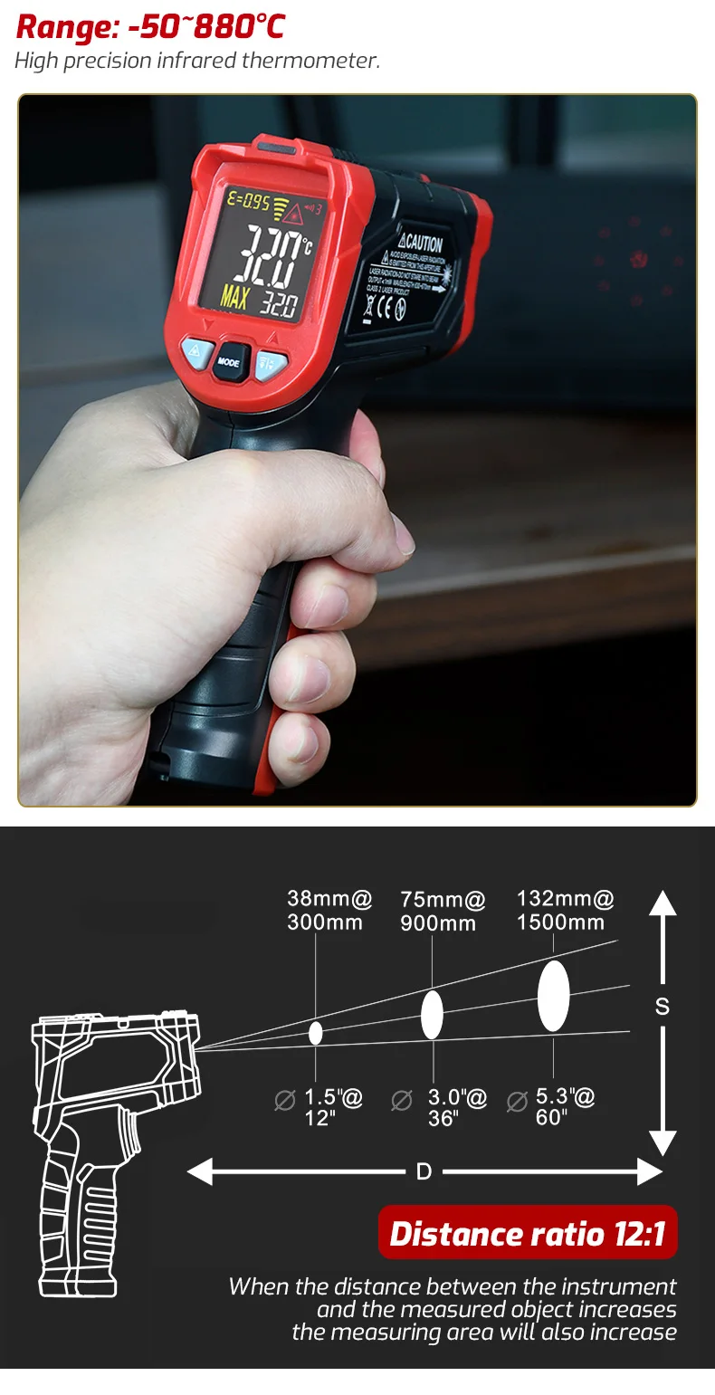 Цифровой инфракрасный термометр MESTEK, Бесконтактный измеритель те...