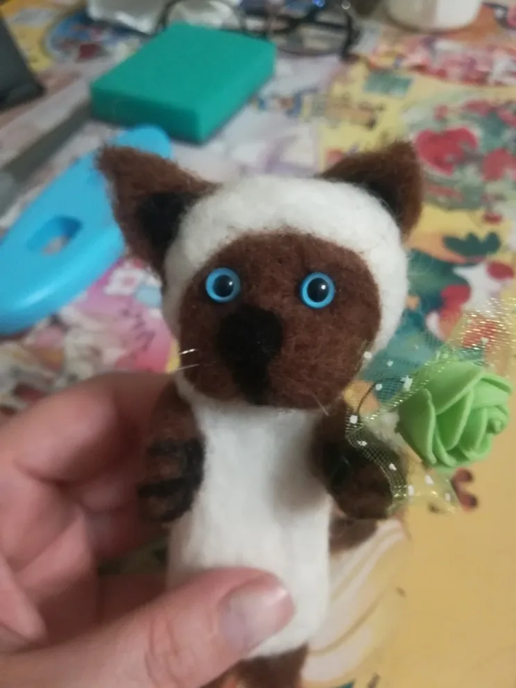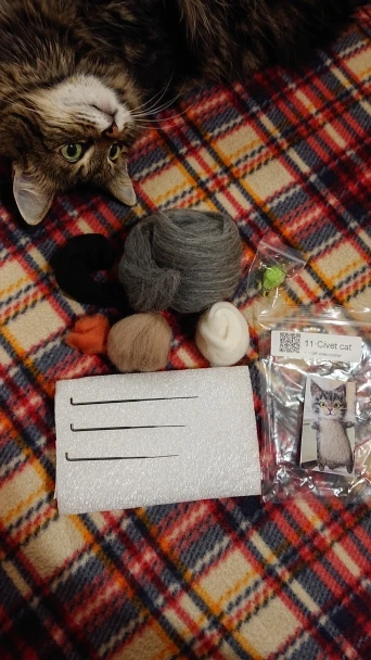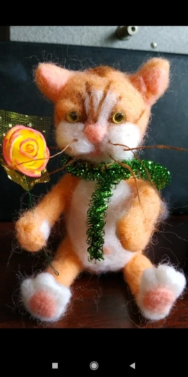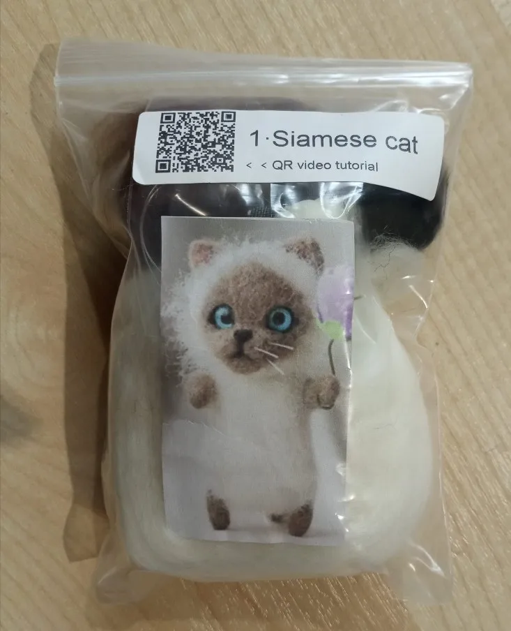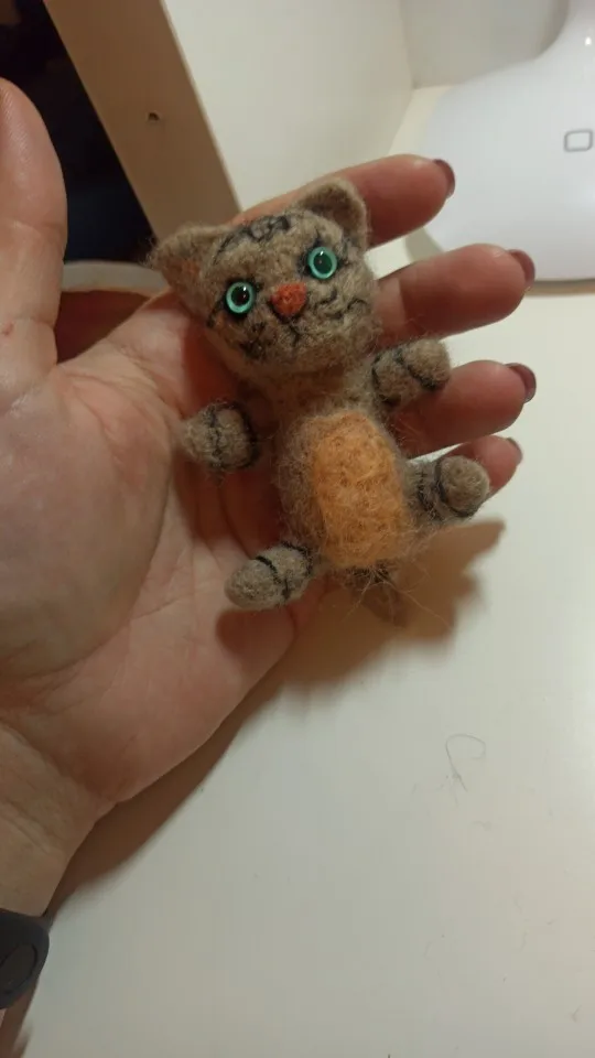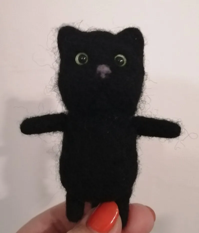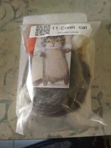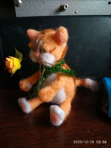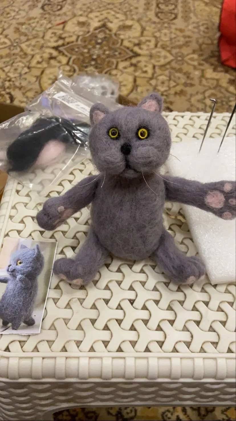 Очень забавный получился котик. Делаю впервые. В наборе есть все необходимое. Даже шерсти осталось немного.