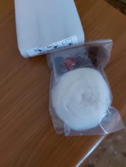 пришло быстро, в комплекте пенка, шерсть, иглы, глазки, цветочек для декора.