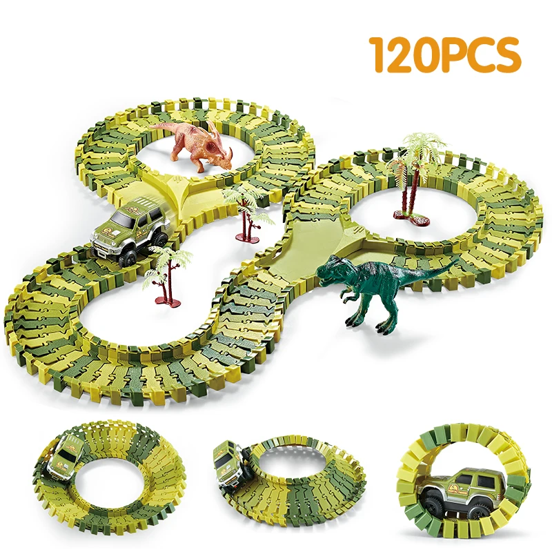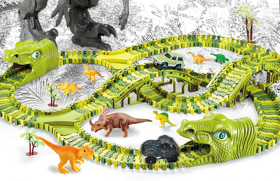 Трек гоночный трек игрушечный набор динозавр железная дорога игрушечный автомобиль обучающий гибкий гоночный трек светящийся светильник ль игрушки для детей мальчиков