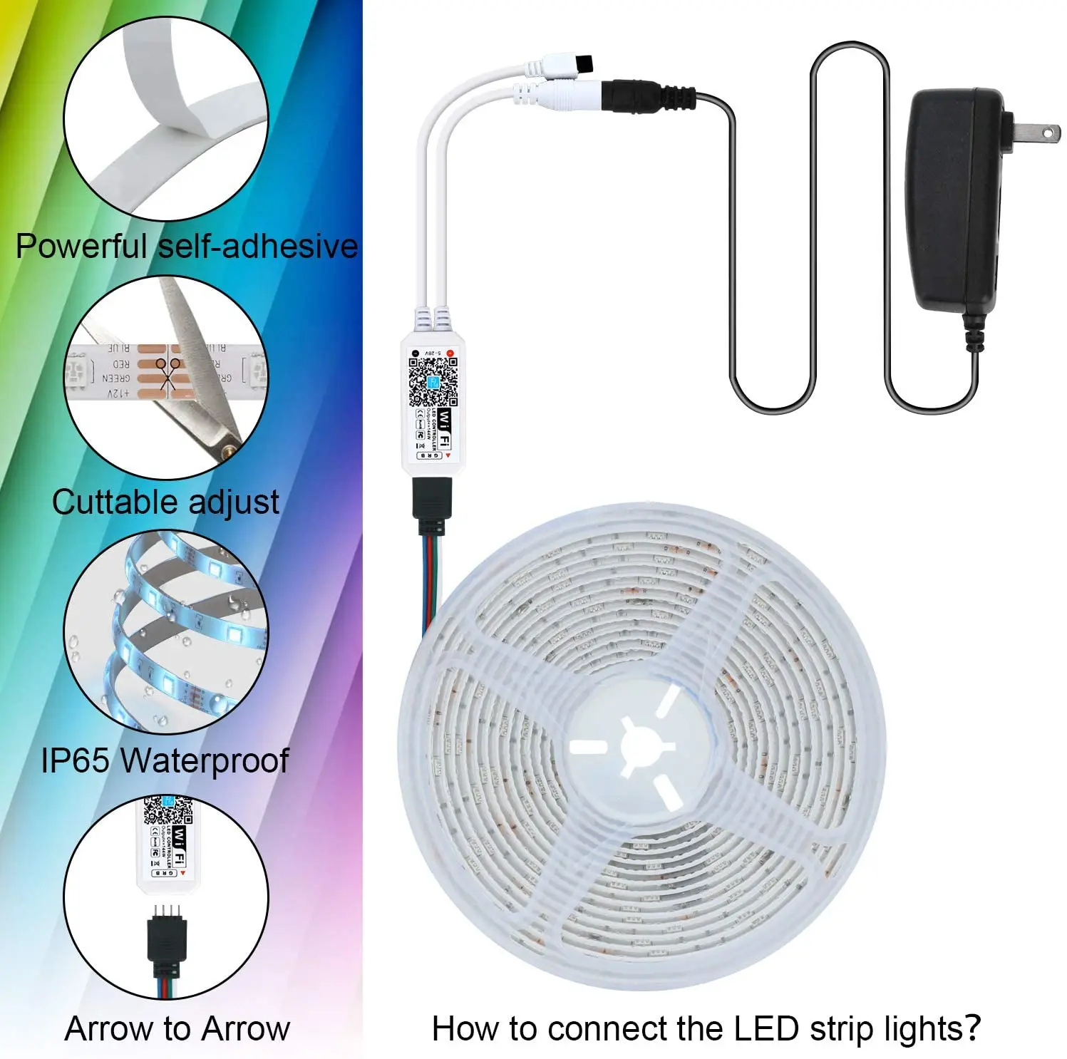 Светодиодная лента, 12 В постоянного тока, RGB 5050, 5 м, 10 м, 15 ...