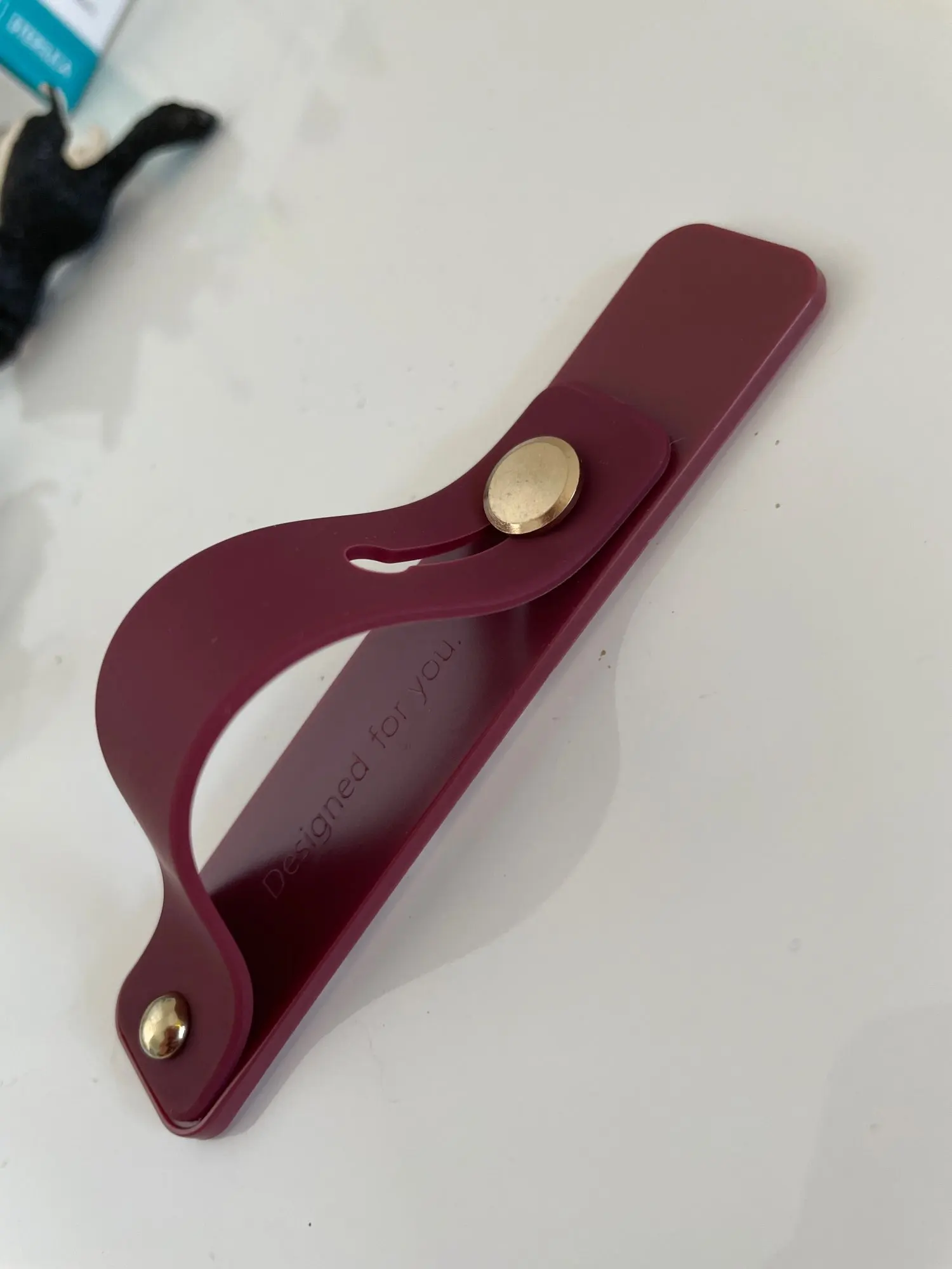 Держатель добротный. Оказался немного жестче, чем я представляла. Размер петли хорошо подходит под два пальца.