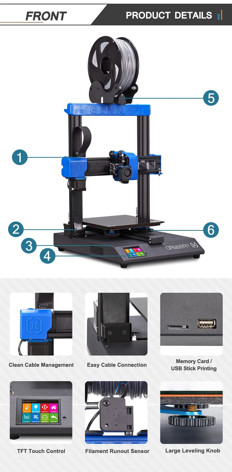 Настольный 3D-принтер Artillery GENIUS, высокая точность печати, двойная ось Z, TFT сенсорный экран