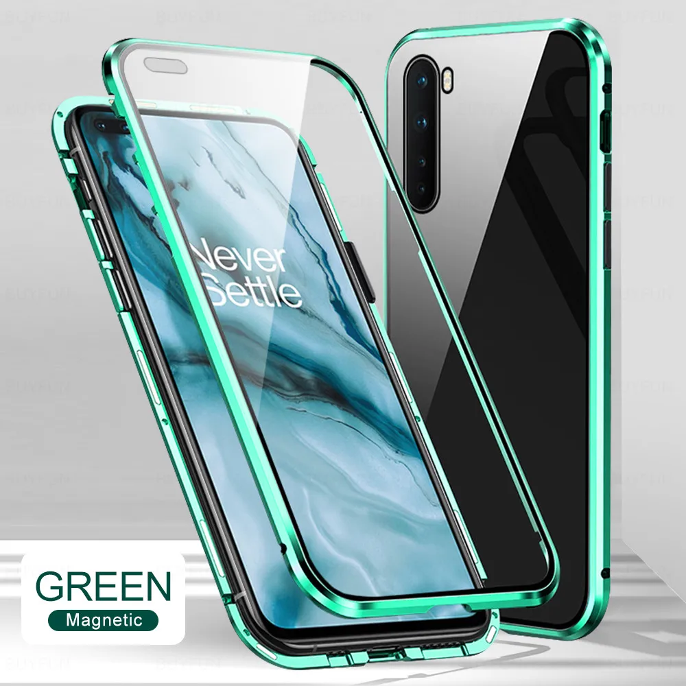 Чехол-книжка для oneplus nord, металлический магнитный чехол с полным покрытием на 360 , двусторонний защитный чехол из закаленного стекла