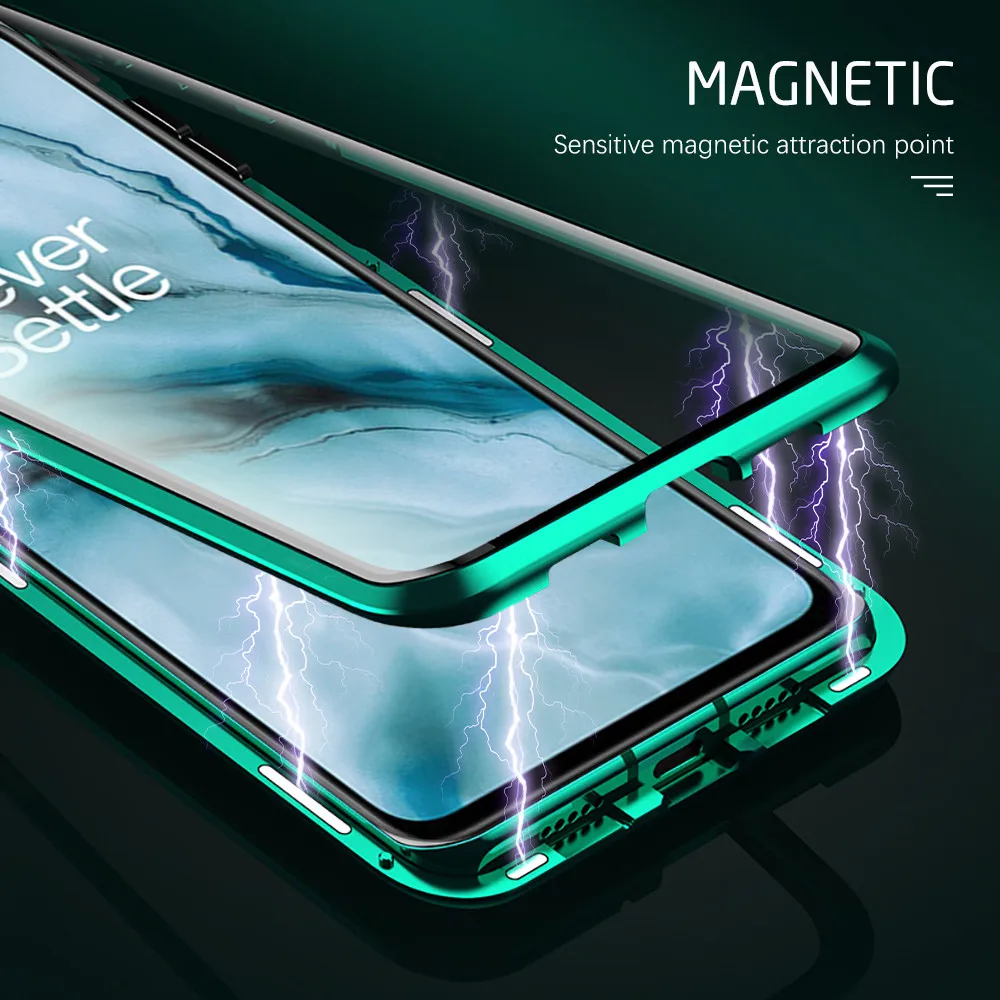 One plus nord чехол 360 ° полное покрытие металлический магнитный флип-чехол для oneplus nord двухсторонний защитный чехол из закаленного стекла