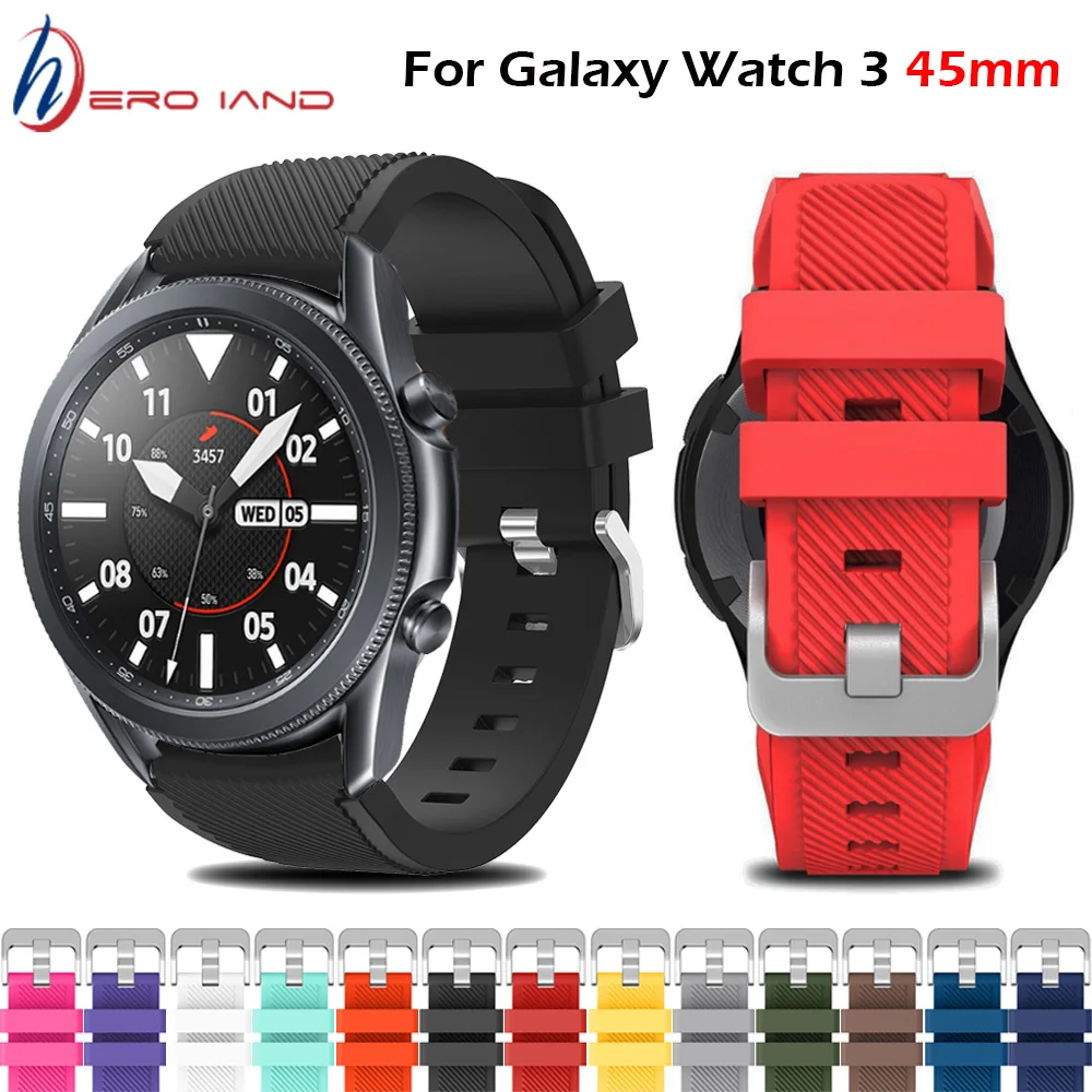 Цветной ремешок 22 мм, ремешок для Samsung Galaxy Watch 3 45 мм, мягкий силиконовый спортивный браслет, аксессуары, ремешок