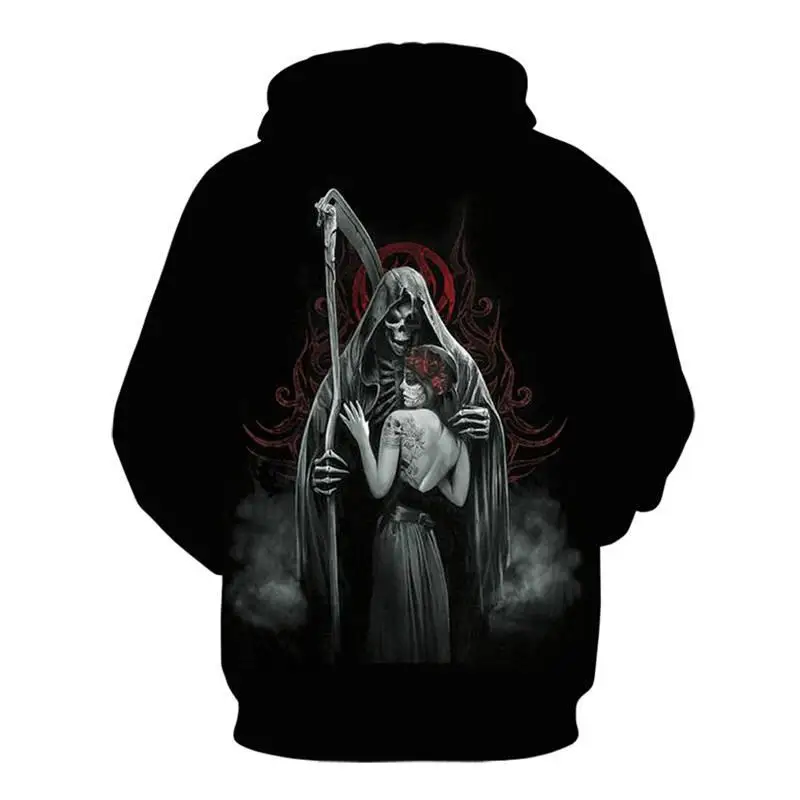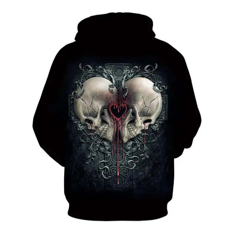 Мужская толстовка с 3D-принтом черепа, Черный свитшот в готическом ...