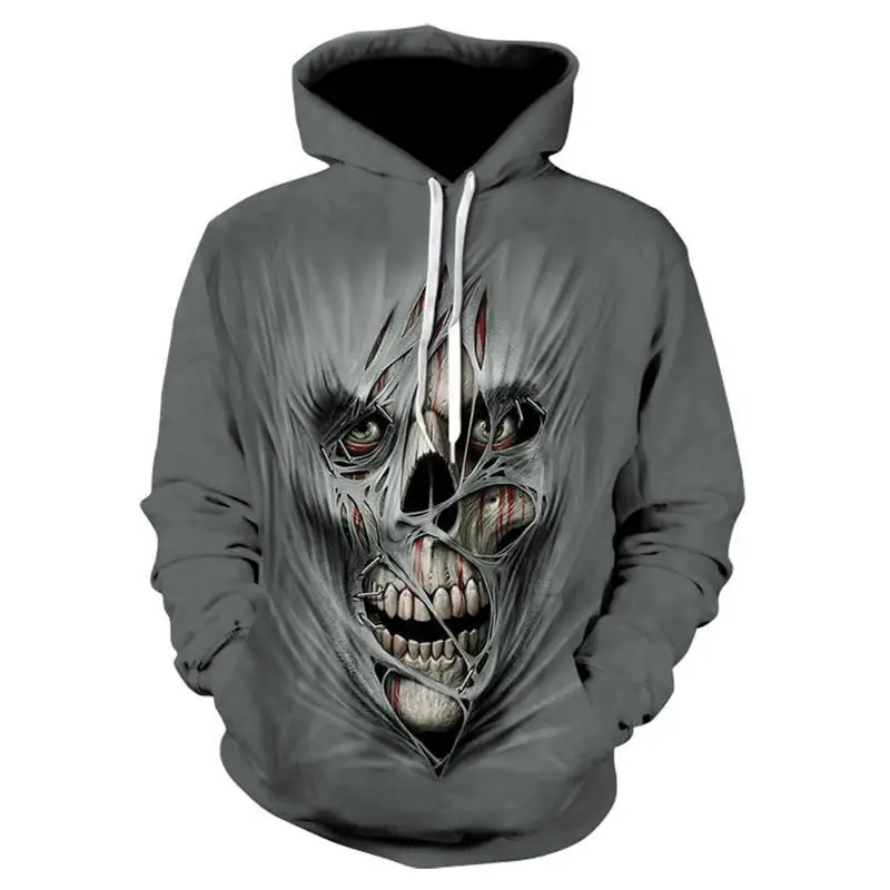 Толстовка мужская с 3D-принтом черепа, хип-хоп худи, новая уличная ...