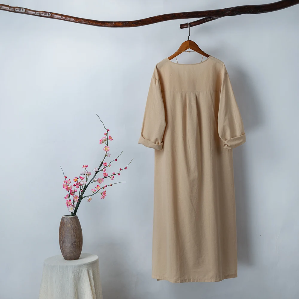 Женское Свободное длинное винтажное платье, размер d, рукав 34, о-образный вырез, размера плюс, однотонное платье в стиле бохо, Повседневное платье макси, Vestidos