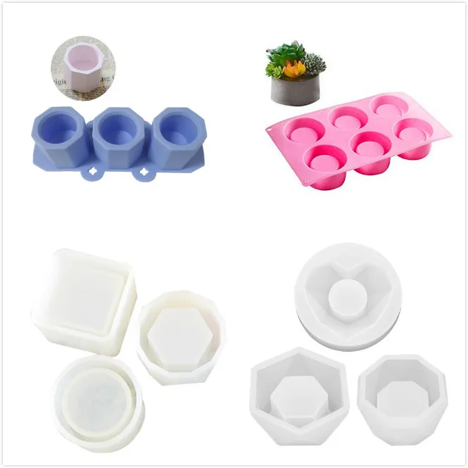 Силиконовая форма для бетона, 4 вида, для самостоятельного изготовления цементных горшков, глиняных изделий ручной работы, цементная форма для суккулентов, растений, цветов