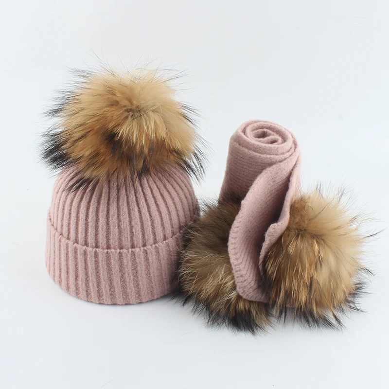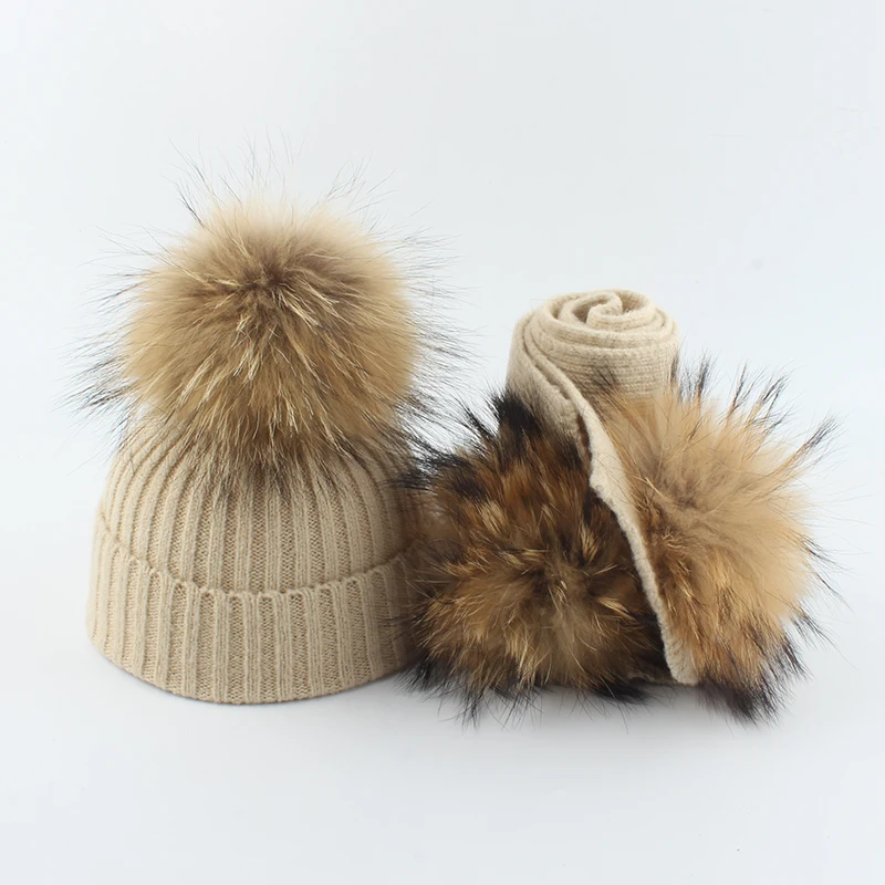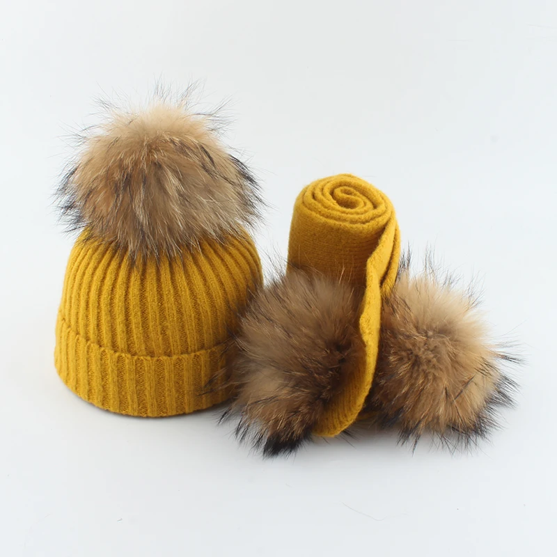 Детская шерстяная шапка шарф для малышей вязаная шапочка с помпоном из натурального меха детская зимняя шапка и шарф набор для девочек и мальчиков