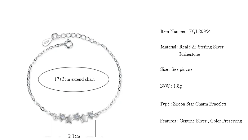 Fanqieliu O цепи продлить звезда браслет женские Стразы стерлингового серебра 925 браслеты из нержавеющей стали для женщин FQL20354