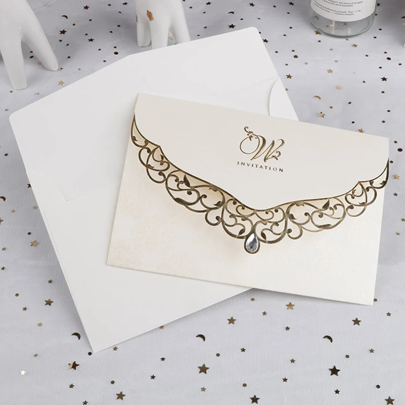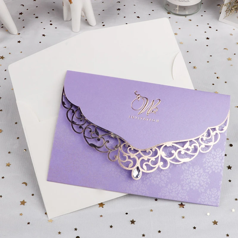 Элегантные свадебные пригласительные открытки с бриллиантами, лазерная резка, деловая поздравительная открытка г., 1 шт.