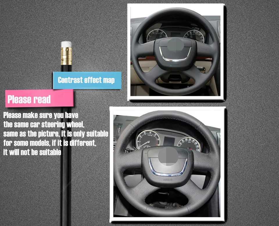 Пожалуйста, прочитайте перед покупкой (если вам нужны другие продукты, вы также можете проконсультироваться со службой поддержки клиентов) Перед покупкой, пожалуйста, проверьте рулевое колесо автомобиля и сравните с рулевым колесом на картинке. (Наша крышка рулевого колеса является индивидуальным продуктом, если есть какие-либо различия, она не будет применяться)! A Этот товар-чехол для руля, а не руль! A Этот продукт подходит для Skoda Citigo Roomster Fabia 2009-2012 Octavia Yeti Superb 2008-2013 других моделей. Если у вас есть какие-либо вопросы, пожалуйста, сначала свяжитесь со службой поддержки клиентов
