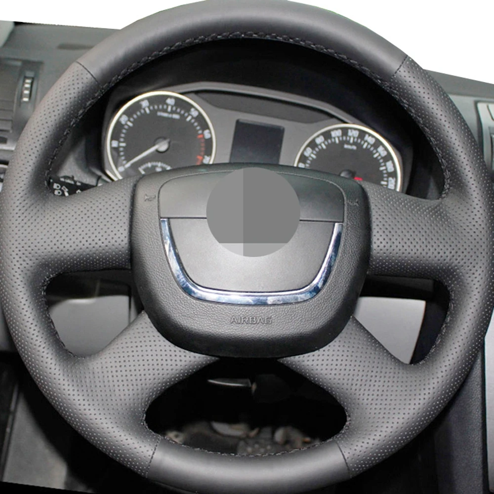 Чехол рулевого колеса автомобиля для Skoda Citigo Roomster Fabia 2009-2012 Octavia Yeti Superb 2008-2013 черный Сделай Сам искусственная кожа