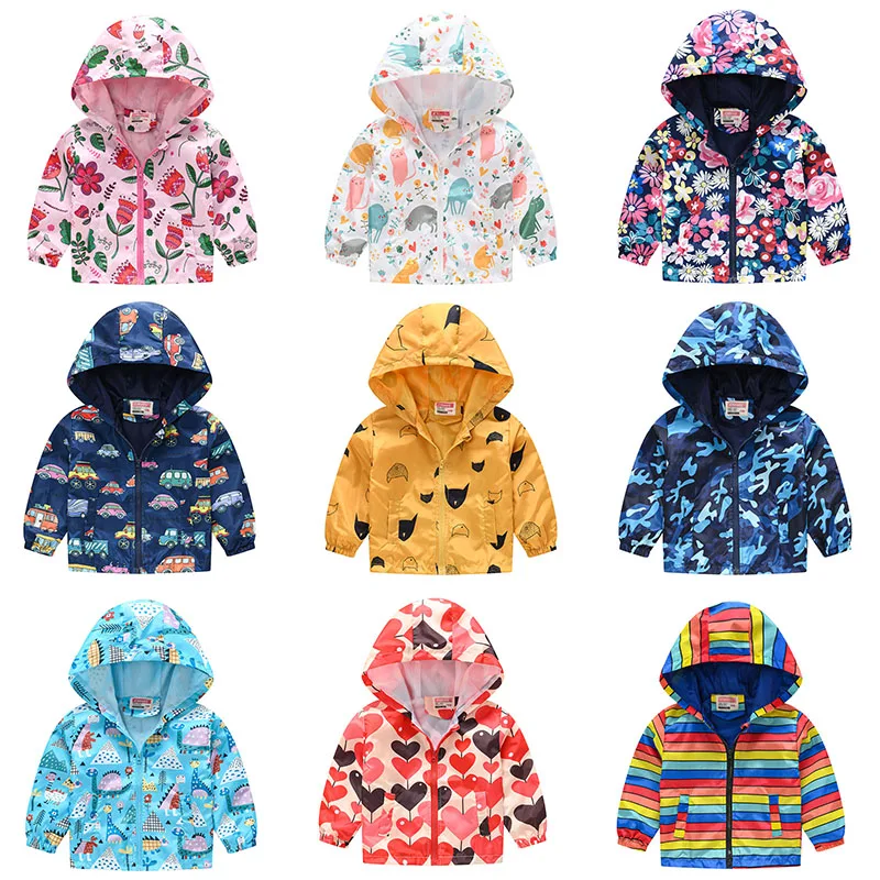 2020 Весенняя детская одежда куртки для мальчиков детская ветровка на молнии с капюшоном Модное детское пальто с принтом верхняя одежда для девочек