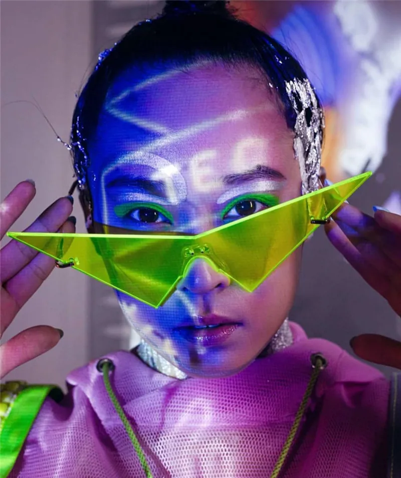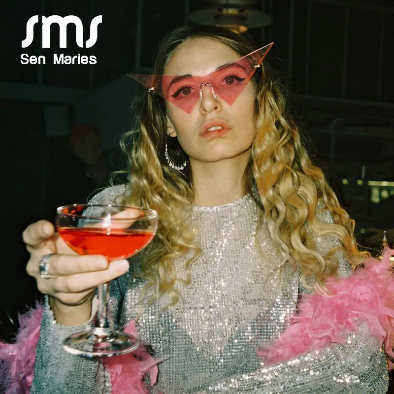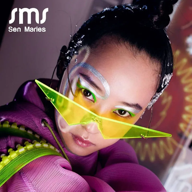2020 негабаритные очки без оправы в стиле стимпанк женские индивидуальные цельные треугольные солнечные очки мужские очки с большой оправой кошачий глаз