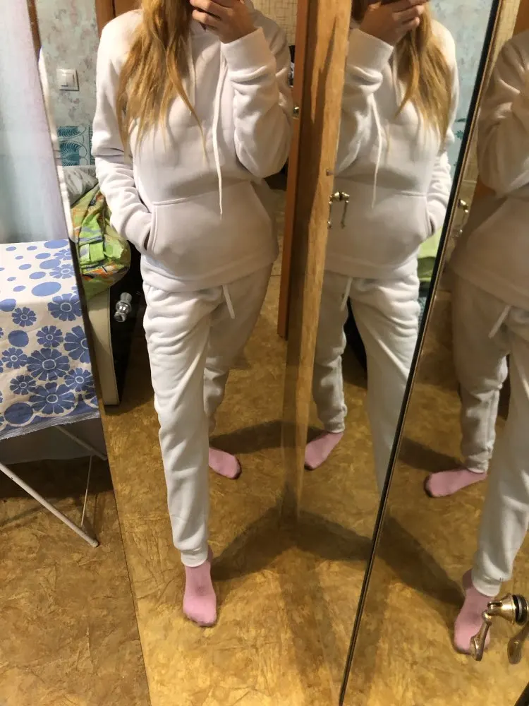 Костюм лютая синтетика, потеешь в нем как в целофане и к тому же цвет штанов и кофты не совпадает, те это не смотрится как костюм, а как отдельно штаны и кофта. Открывала спор, вернули часть денежки, на этом спасибо.