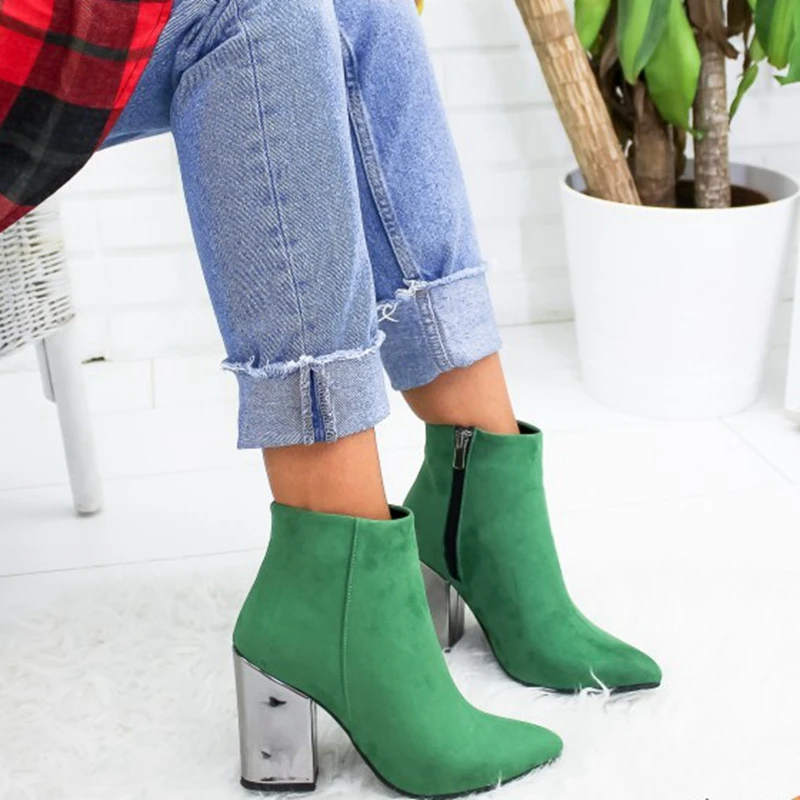 Европейские ботинки с острым носком для девочек, однотонные женские...