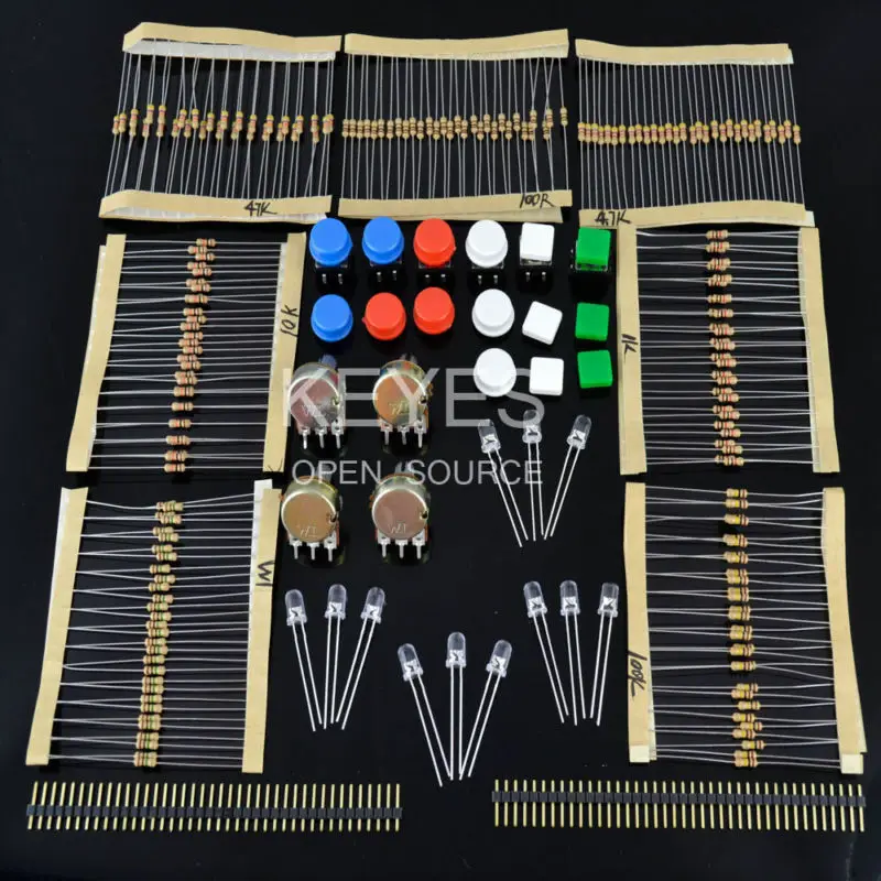 Комплект универсальных электронных запчастей для вентиляторов, комплект для пусковых курсов Arduino, компонентные резисторы, кнопка переключателя