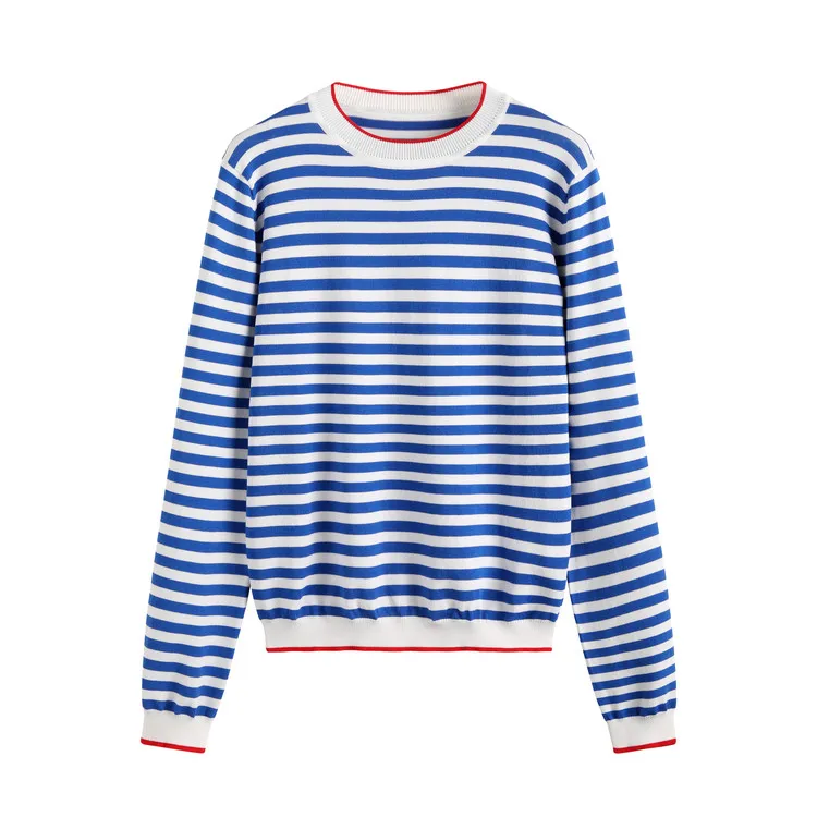 Свитер женский весенне-осенний, полосатый, с круглым вырезом, Повседневный, вязаный, эластичный, базовый, с длинными рукавами, B-128
