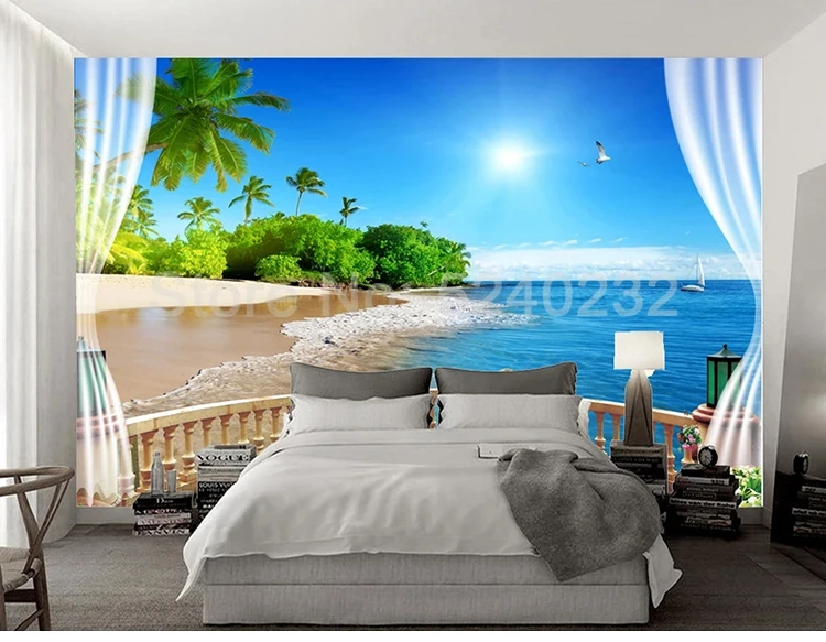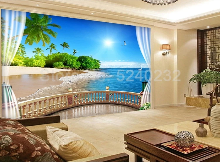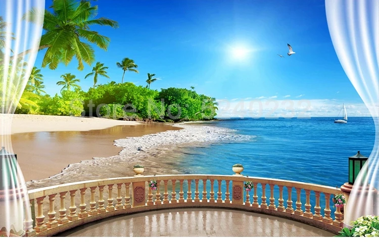 3d-постер по индивидуальному заказу, настенная живопись с изображением балкона, окна, моря, Большая фреска с пляжем, пейзажем, гостиной, спальни, декоративные 3D-обои