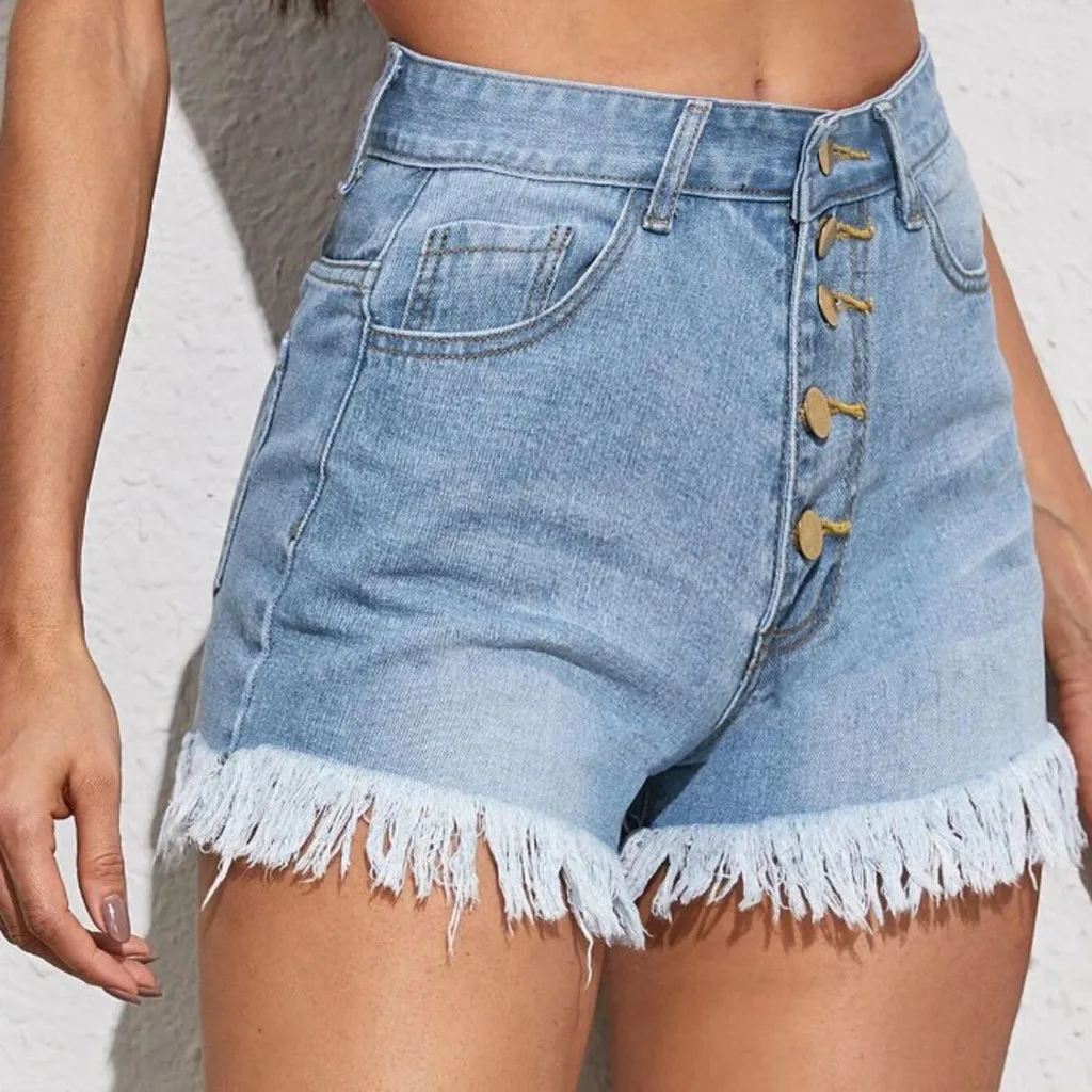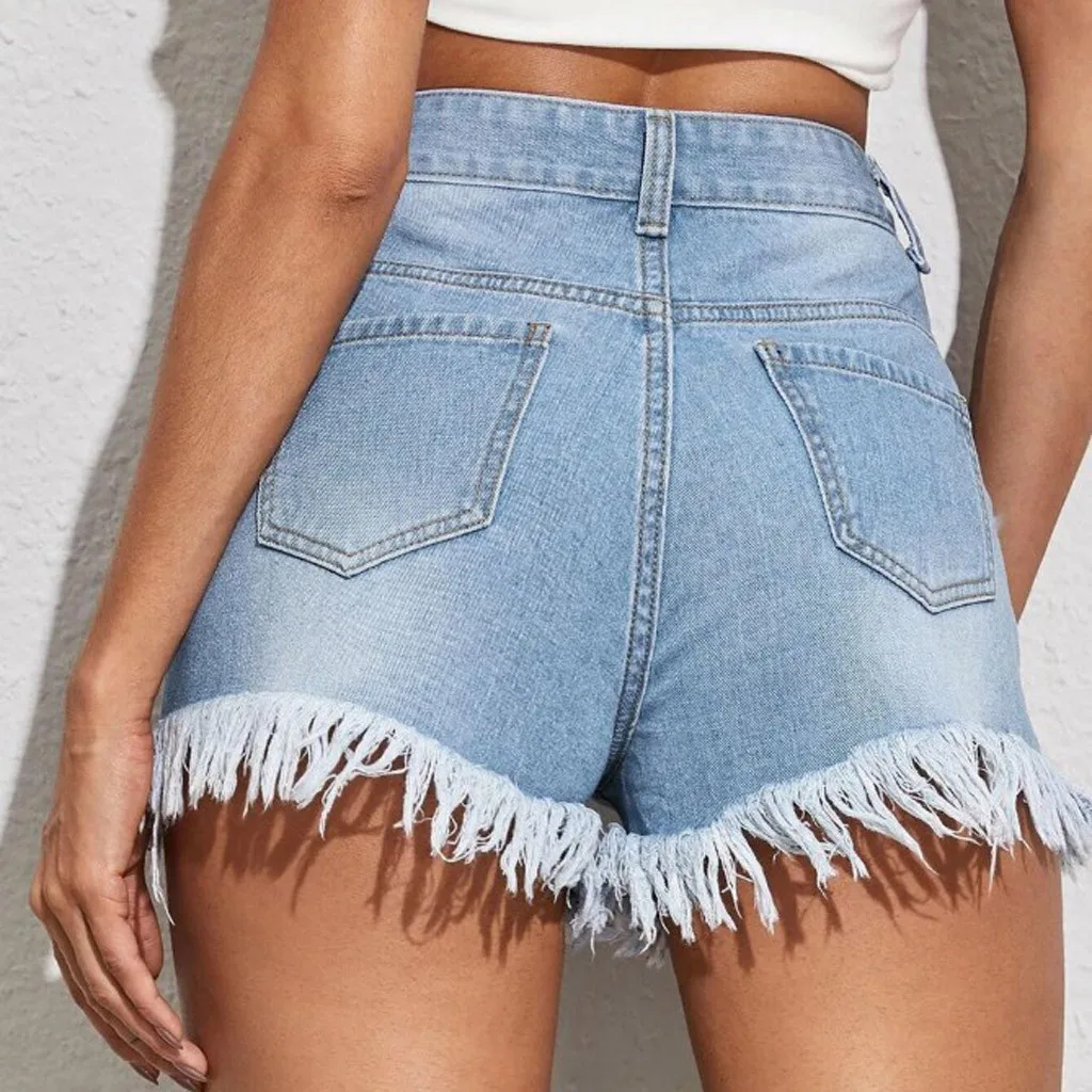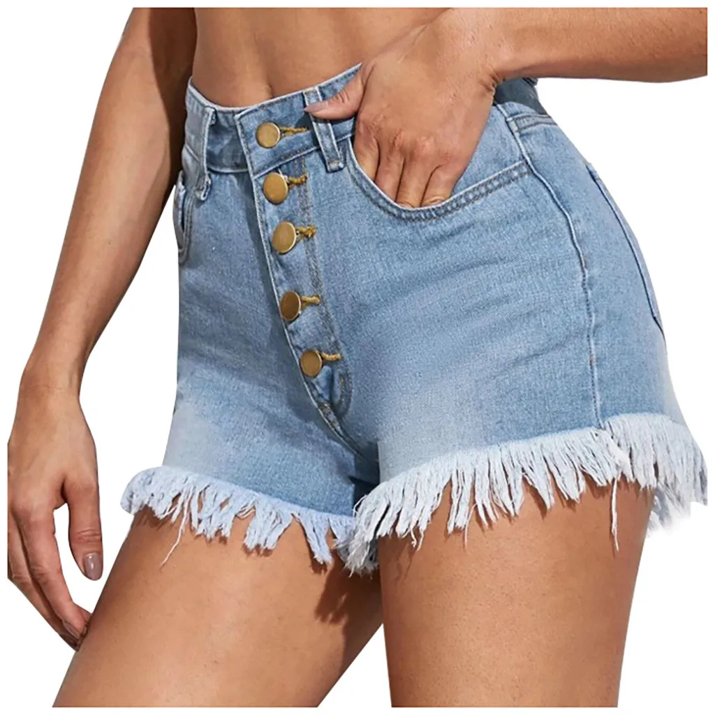 Шорты женские из денима, модные однотонные синие короткие джинсовые штаны с дырками и бахромой, винтажные, LW, лето 2020